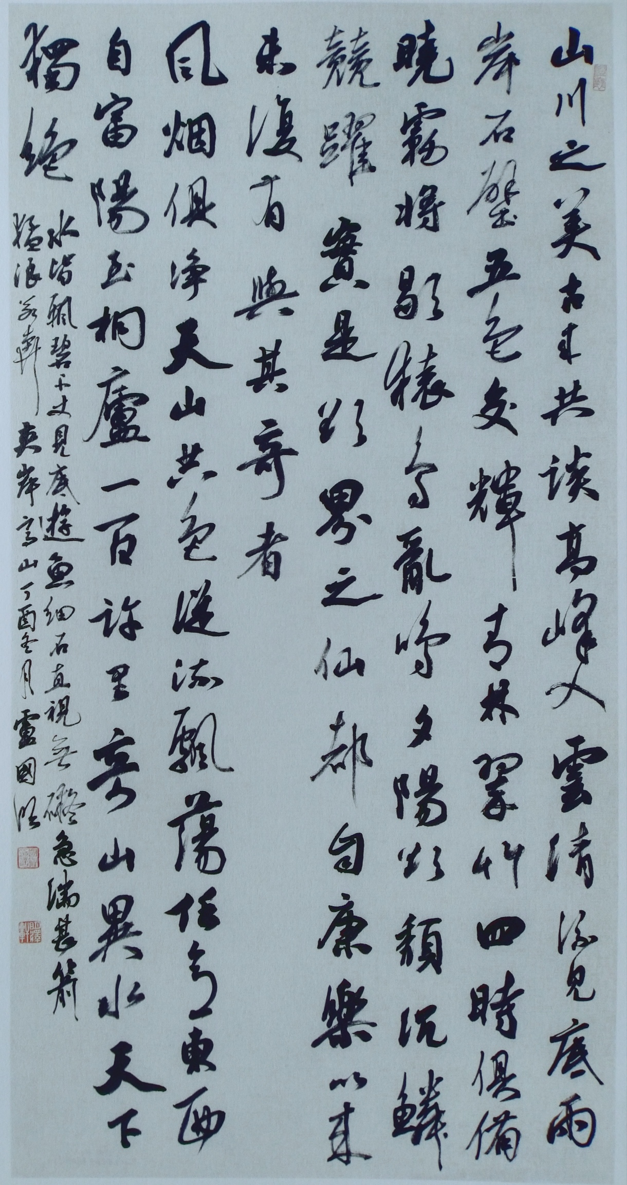 卢国旺,号河东漫士,明泽堂,当代书法名家,诗人。诗、书、画、印俱佳,先后受教于书法名家吴未淳、卜希旸、刘洪彪、李有来等,进修于中国书画国际大学书画专业、中国书法家协会书法培训中心书法高研班、导师工作室研修班、中央电视书画频道草书高研班,清华大学美院导师研修班等。现为中国书法家协会会员、中华诗词学会会员、中国楹联学会会员、中国书法家协会高级注册教师、中国硬笔书法协会会员、中国教育电视台《水墨丹青》书画院会员、北京书法家协会会员、中国书画函授大学书画家协会会员、中国书画界联合会会员 、《东方艺术天地》书画家协会会员、中国秦文研究会会员。参展作品