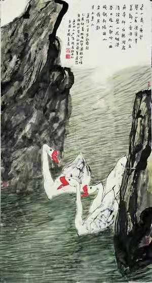 江文湛先生风流倜傥,善饮,常于酒后作画。他的审美意识是人本的、原始的、粗犷的生命力,在艺术上他追求的是一种梦幻般朦胧和自身潜在的心理情感。多年来,江文湛先生不喜张扬,一直致力于钻研学问。尤其是他用十多年时间在终南山创建的艺术创作基地“红草园”,成为其潜心治学、精心研究花鸟画创作的重要艺术家园,曾被全国各大电视台和报刊、杂志等相继报道多次,在全国美术界产生广泛影响。