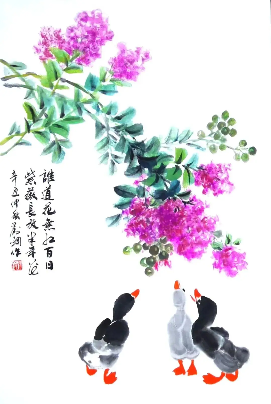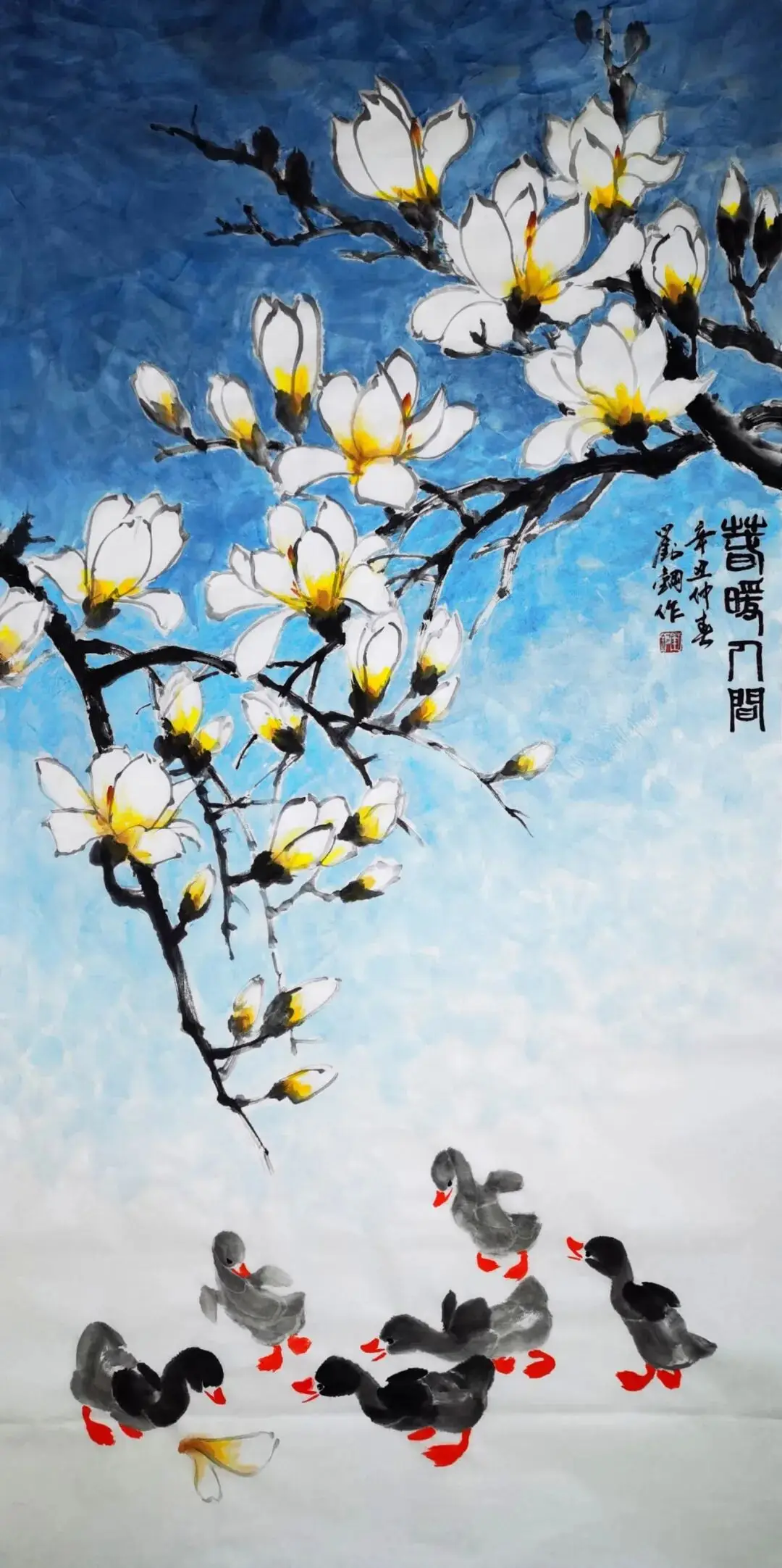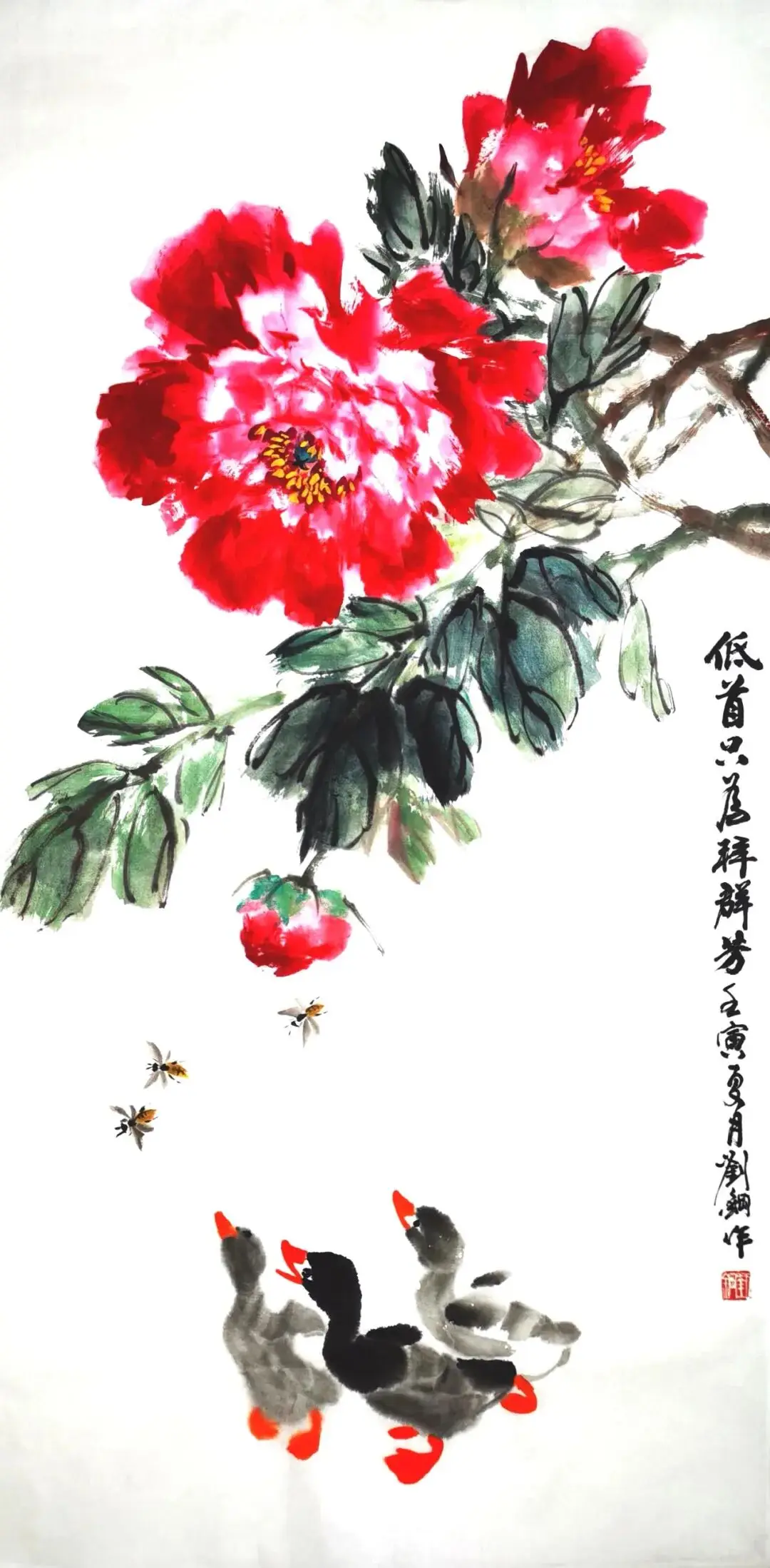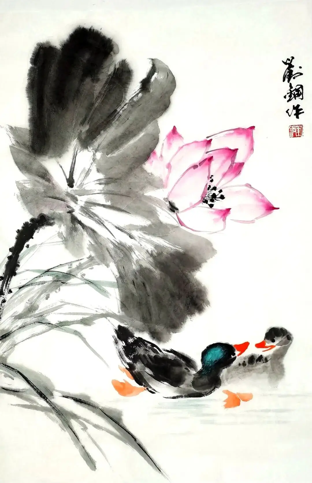 刘钢追随娄师白先生习画近三十载,下苦功而求真谛,凭敬诚而得真传,心无旁骛,胸有波澜。心追手摹恩师笔墨,书画并举,德艺双修。其写意花鸟画在继承齐派特色的基础上又有创新。在创作中他着力从写生中提炼素材,大胆运用,使花鸟画的题材更加丰富多样,更加贴近生活,贴近大众。在绘画技法上他大小写意并用,在体现作品意境的同时提升了画面的形式美。刘钢在掌握了娄师白先生创作水墨雏鸭技法的基础上融入自己的观察和感悟,历练自己的笔墨,在创作中努力探索更加生动有趣的小鸭形象,其小鸭题材的作品颇受众人喜爱。刘钢的山水画画法不拘一格,他在临习古人的前提下博采众长,喜欢尝试多种技法并借鉴了一些西画的表现形式,使山水画呈现出新的面貌。刘钢在他的艺术道路上默默实践着恩师娄师白先生的“厚今而不薄古,基中可以融洋”的创作理念。