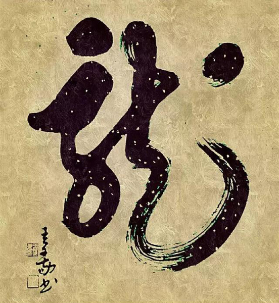 值得一提的是王义老师的“滚笔”技法,所谓滚笔即揉笔,就是在行笔过程中,不脱气不脱墨,这种技法关键在于腕力,行笔过程中要气沉丹田,一支斗笔在指间既要像绣花针举重若轻,又要如金箍棒使千钧之力凝聚笔尖笔腹才能挥洒自如。