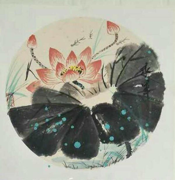 张老师尤为擅长画荷花,“出淤泥而不染,濯清涟而不妖,中通外直,不蔓不枝,香远益清,亭亭净植,可远观而不可亵玩焉。”北宋周敦颐一篇《爱莲说》可谓将荷之美备述矣,然而画家们则有不同意见,审美关乎性情与意趣,不同的画家笔下的荷花则有不同的美。张老师笔下的荷花素净纯美,亭亭玉立又不失潇洒飘逸,远观仙气十足,与荷花的高洁性情正好符合。