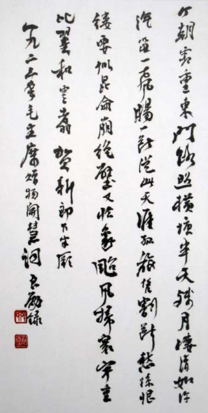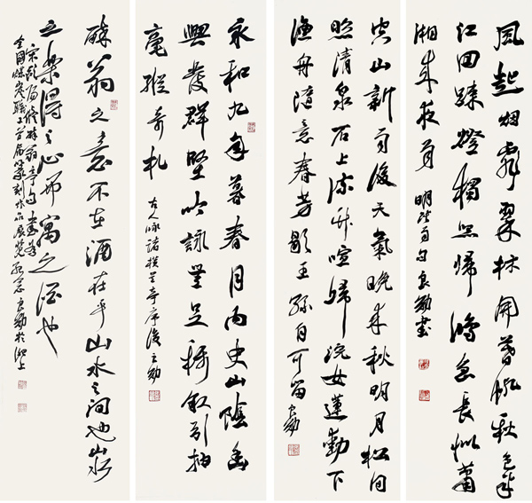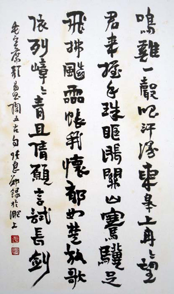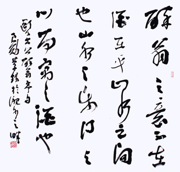 上世纪七十年代以来,先生致力于书法研究。承“二王”古韵,慕秦篆、汉隶和钟繇、张芝、张旭、怀素之圣光,兼取欧、颜、虞、柳、苏、黄、米、蔡,以及赵子昂、文征明、祝枝山等书贤之长。尤其于王羲之、苏东坡、黄庭坚、米芾等法贴,和章草、行书、行草、大草上,玉汝于成,多有感悟。