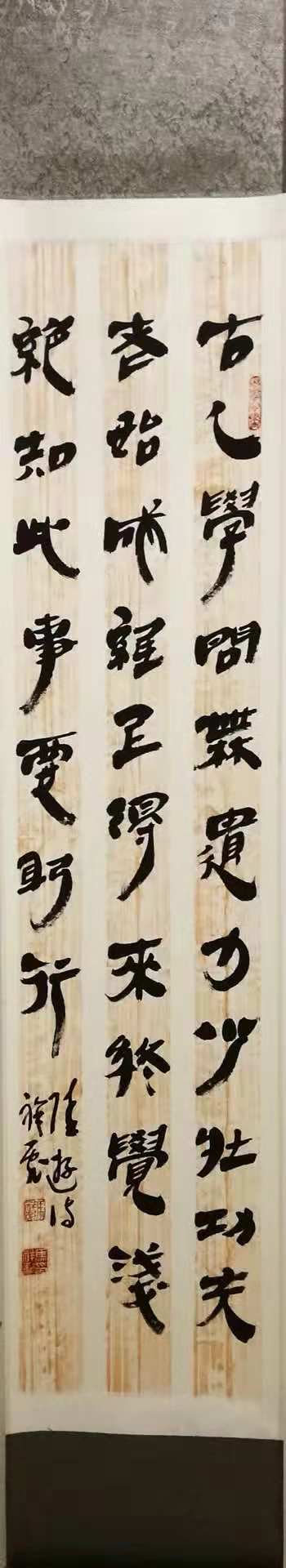 马祥彪,男,江苏省盐城市响水县人,现定居北京,自幼练习书法,以隶书见长,兼习篆、草等书体。作品多次在全国书画大赛中获奖,在北京、香港、新加坡、日本、韩国、获律宾等国家和地区展出,被多家书画院和博物馆收藏,在书画频道展播,已出版个人专集巜中国书画百杰》作品集(马祥彪卷、天津人美出版)入编《中国艺术大家》人美出版。入编巜中国长城艺术家》书法卷中国文联出版等多部书画典籍,多次被国内外邮册收录。作品还镌刻在国家重点文化保护单位八达岭长城高拨子段。 在2018 年艺术人物榜网络评选活动中被推选为2018 中国好品牌*影响力书法家。