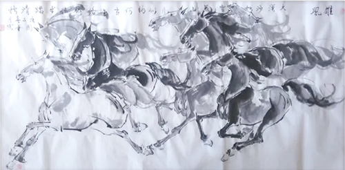 张国华,1949年生,河北唐山人,玉田县老年书画研究会理事,玉田县书画家协会会员,唐山市文化艺术交流促进会美术专业委员会委员。自幼酷爱绘画、书法、武术等中华传统文化,潜心研习、坚持不掇。特别在退休后,有更多的时间和精力投入到书画学习和创作当中,以书画交友、博采众长,潜心钻研名家作品风格、技法,书画技艺日臻成熟,形成了自身独特艺术风格。其书法雄健洒脱,苍劲有力,绘画尤以骏马、牡丹、雄鸡见长,用笔着墨,独具特色。近年来,其作品多次在国家、省、市、县级展赛中获奖。2005年,获全国中老年诗书画作品大赛铜奖;2015年,获“唐山银行杯”征文、摄影、书画大赛书画组三等奖;2016年,先后获得中国老年大学协会举办的第五届全国老年书画展纪念奖,省人大常委会等六部门举办的“颂党恩、谱华章、筑梦想”——纪念中国共产党成立95周年暨中国工农红军长征80周年书画摄影艺术精品展荣誉证书,“健康玉田”暨宣传全面两孩政策书画大赛三等奖;2020年,获中国文化艺术人才库举办的“2020书画家集体创作抗疫长卷”优秀书画艺术家奖;2023年,获百年临池艺术网举办的首届“墨儒杯”全国书画大赛二等奖,并被特聘为“墨轩书画院”会员,同年,在“迎中秋,庆国庆”书画展览活动中,荣获“2023迎中秋,庆国庆”金奖·“国粹文化传承人”光荣称号。其作品《吉庆有余》、《双骏图》先后入选《双馨杯全国中老年诗书画家作品总汇》、《中国当代书画名家作品集》,《双骏图》、《清莲》荷花图分别在唐山博物馆、唐山群众艺术馆展出,《志在千里》骏马图被《唐山晚报》刊发,玉田电视台“无终万象”栏目曾专门制作专题片进行重点推介。2005年,被黄河文化艺术研究院授予“中国百杰书画家”荣誉称号,并于2020年被其聘任为终身美术师。2023年,被全国高级艺术职称评审委员会评定为“国家高级美术师”。2021年,被唐山市武术运动协会授予“唐山市武术名家”称号。淡泊明志,宁静致远。因为喜爱,所以专注,并为之上下求索,艺术的道路永无止境,虽有跋涉的艰辛,更有收获的欣喜,唯不止步、不停歇,才能看到途中不一样的风景。