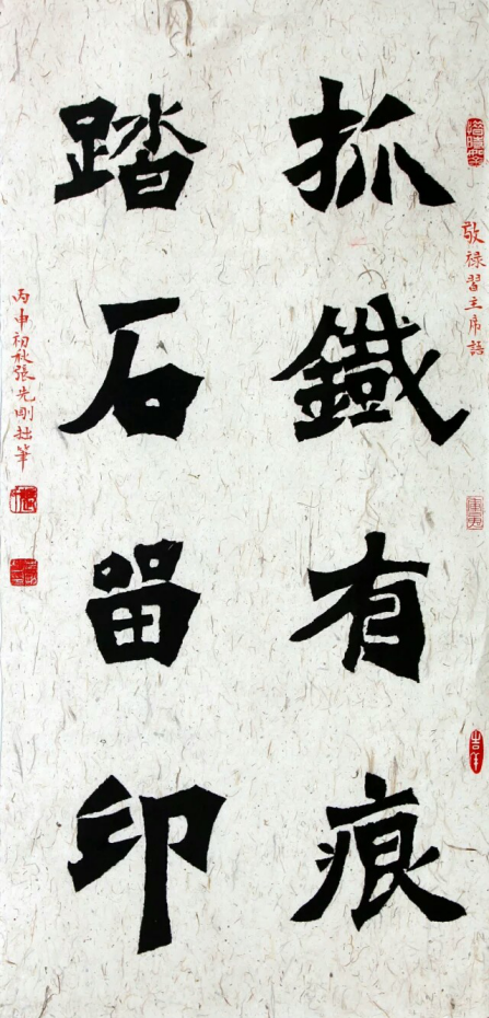 张先刚省书协成员,长期坚持书法学习、创作,作品以魏碑见多,皆习诸体。多次入选全军书法展,全国金鼎书法展,曾被部队评为双优书法家,出有一本《张先刚书法作品选》。书法以碑为源,广临博取,渐入佳境,主攻魏碑和手撕书法,因他从小生活在湘西南千年皇城,浸润于文化沃土,故而下笔细腻而灵动,法度之外尽显潇洒劲健之致,尤其手撕书法,达到较高水准。近些年又得名师周剑初、倪进祥等指授,耳濡目染,受益颇多,使张先刚在书途上迈出更加稳健的步伐。